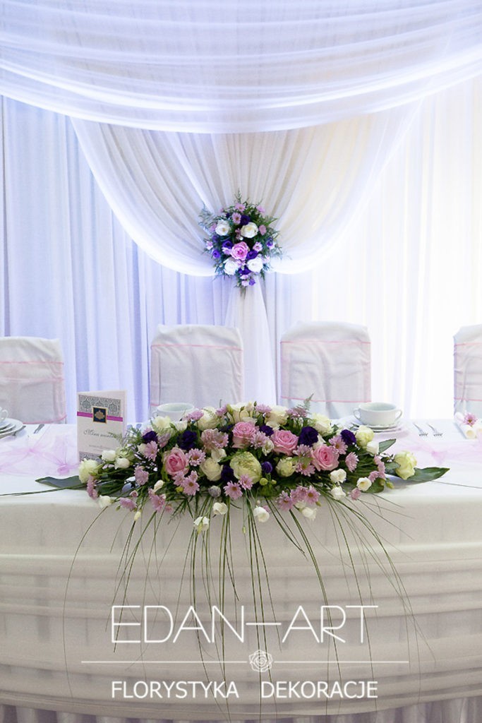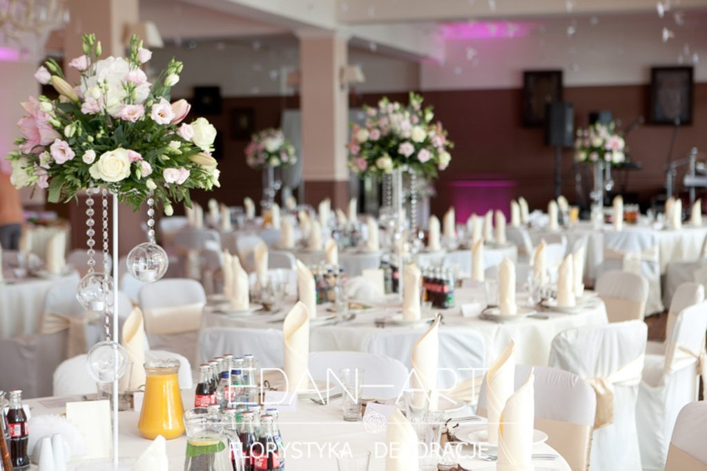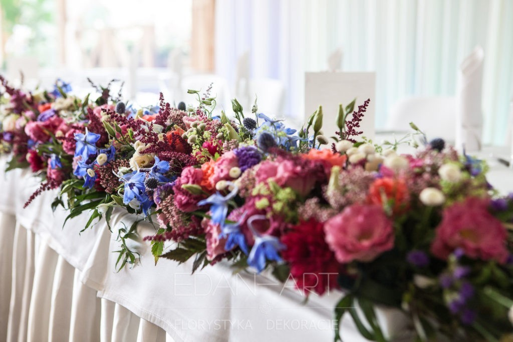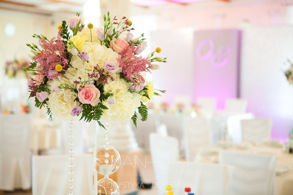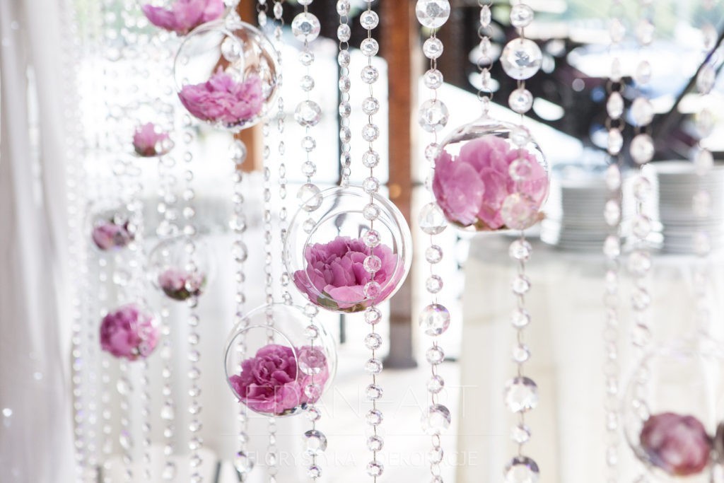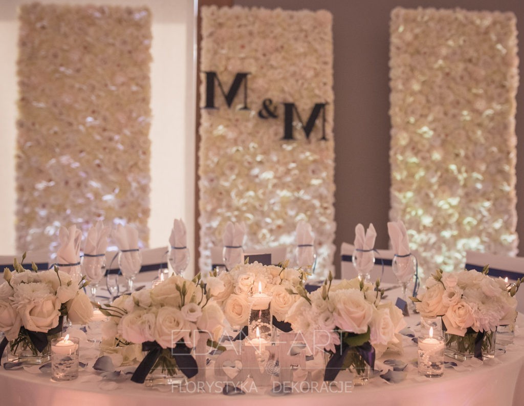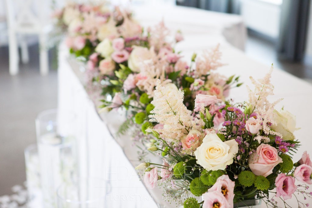 Wszystko to, co jest związane z kwiatami na sali weselnej od dekoracji stołu Młodej Pary, tła za Młodymi, kompozycji na stołach gości weselnych, bukietów na podestach w ważnych miejscach, stołów tematycznych po delikatne akcenty kwiatowe w recepcji czy w pokoju nowożeńców.