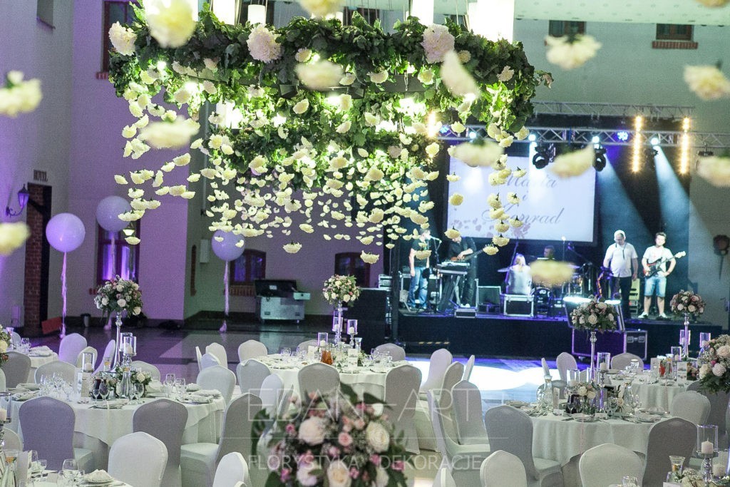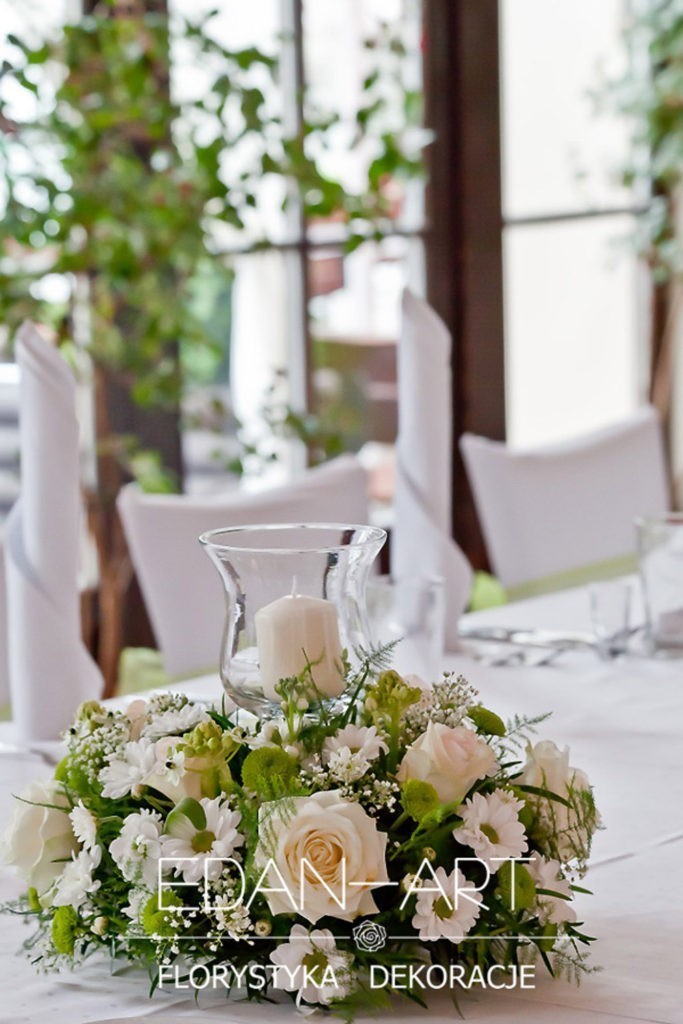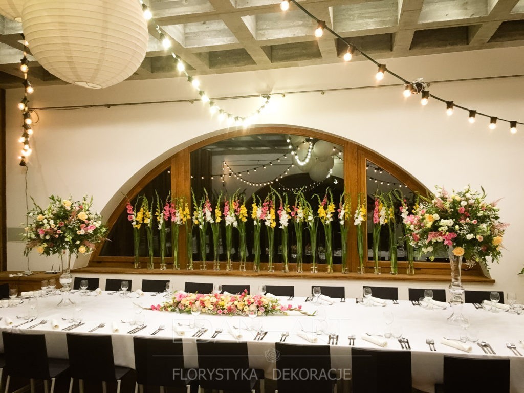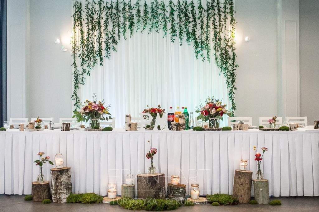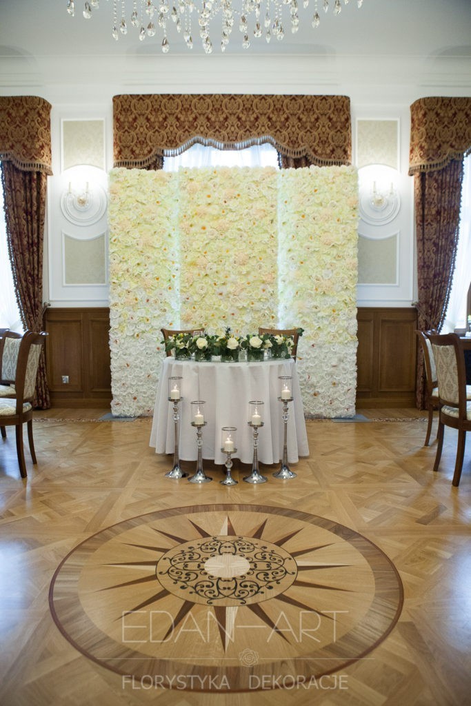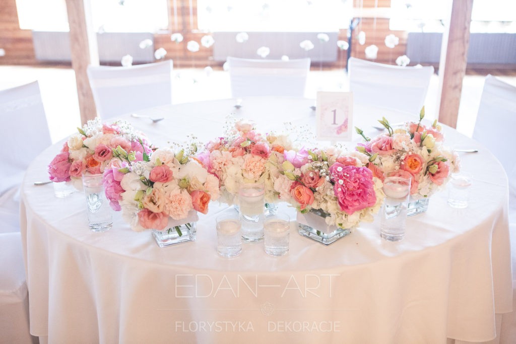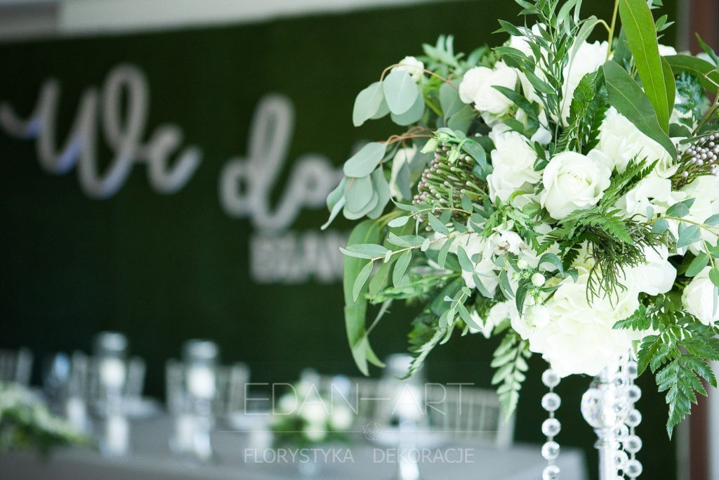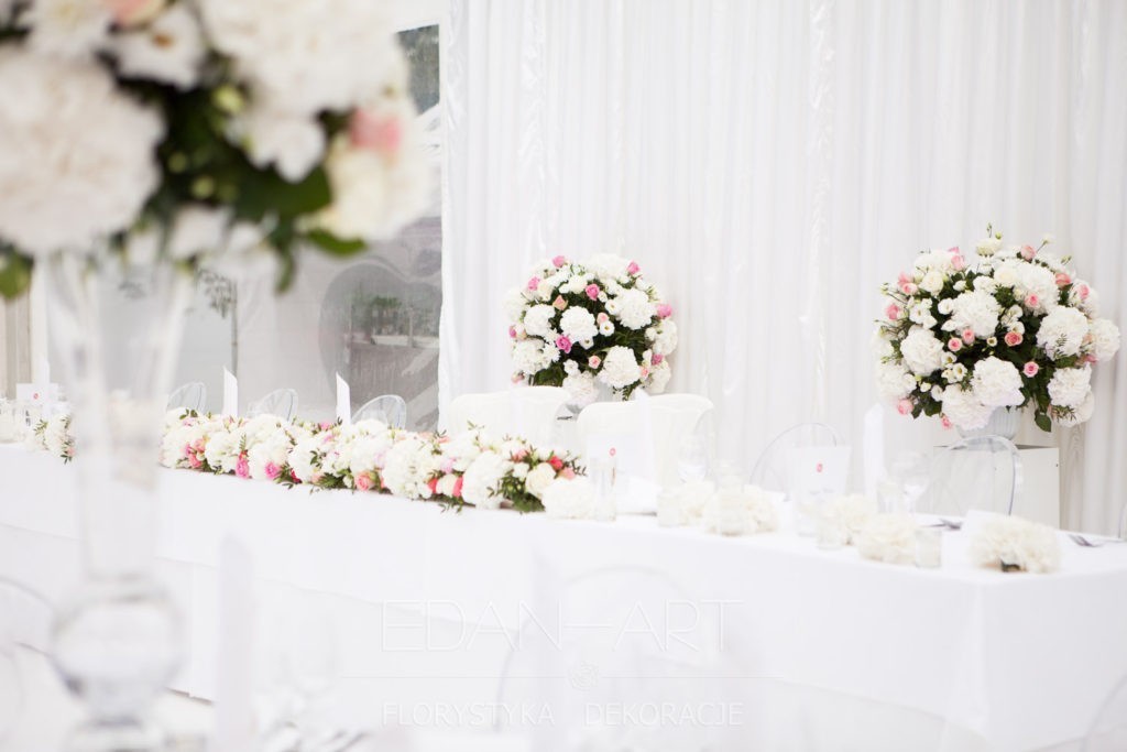 Wszystko to, co jest związane z kwiatami na sali weselnej od dekoracji stołu Młodej Pary, tła za Młodymi, kompozycji na stołach gości weselnych, bukietów na podestach w ważnych miejscach, stołów tematycznych po delikatne akcenty kwiatowe w recepcji czy w pokoju nowożeńców.