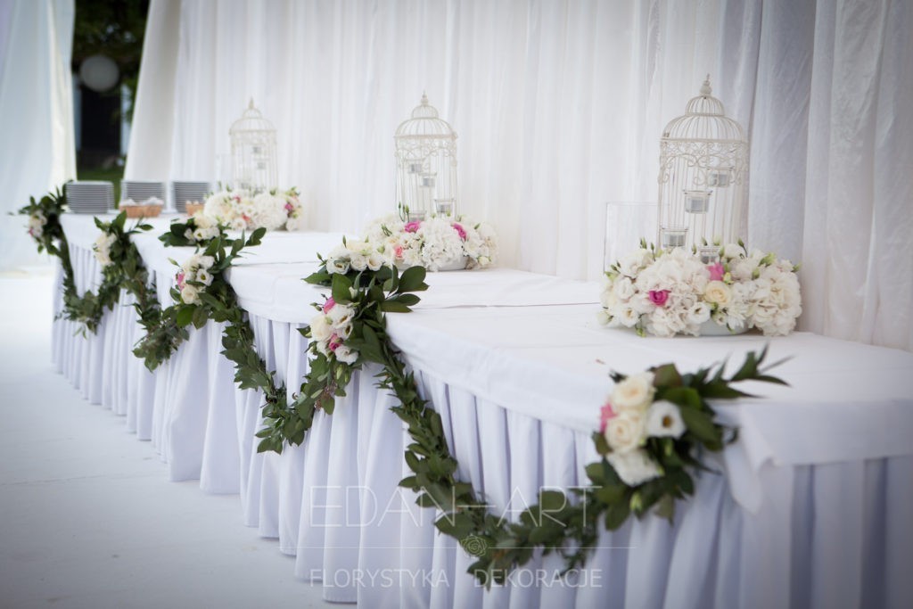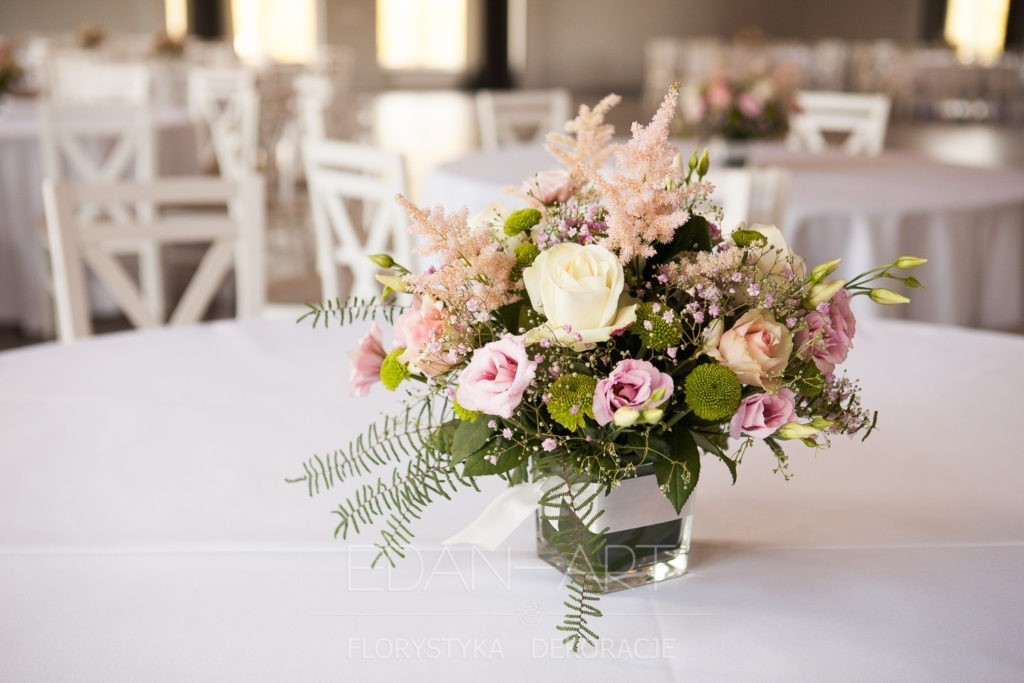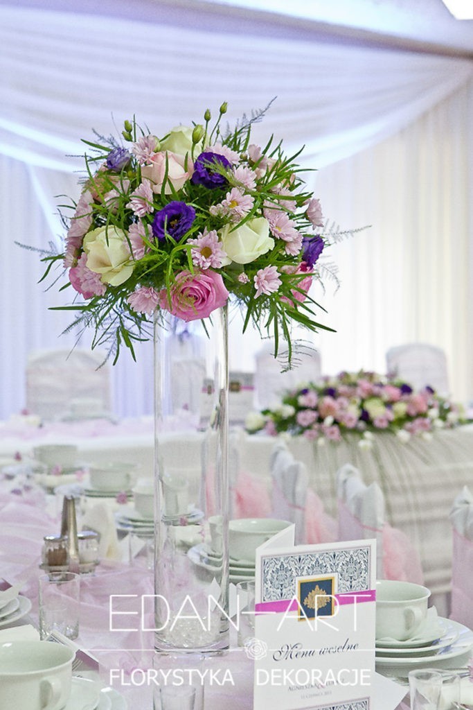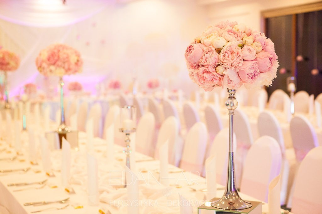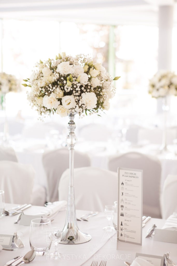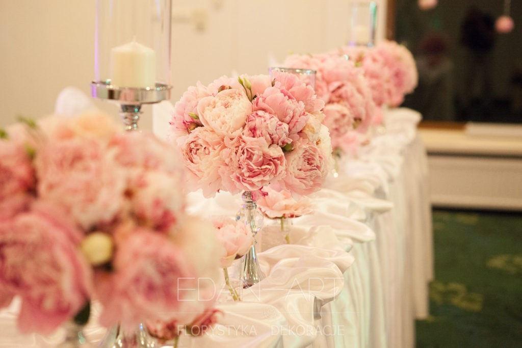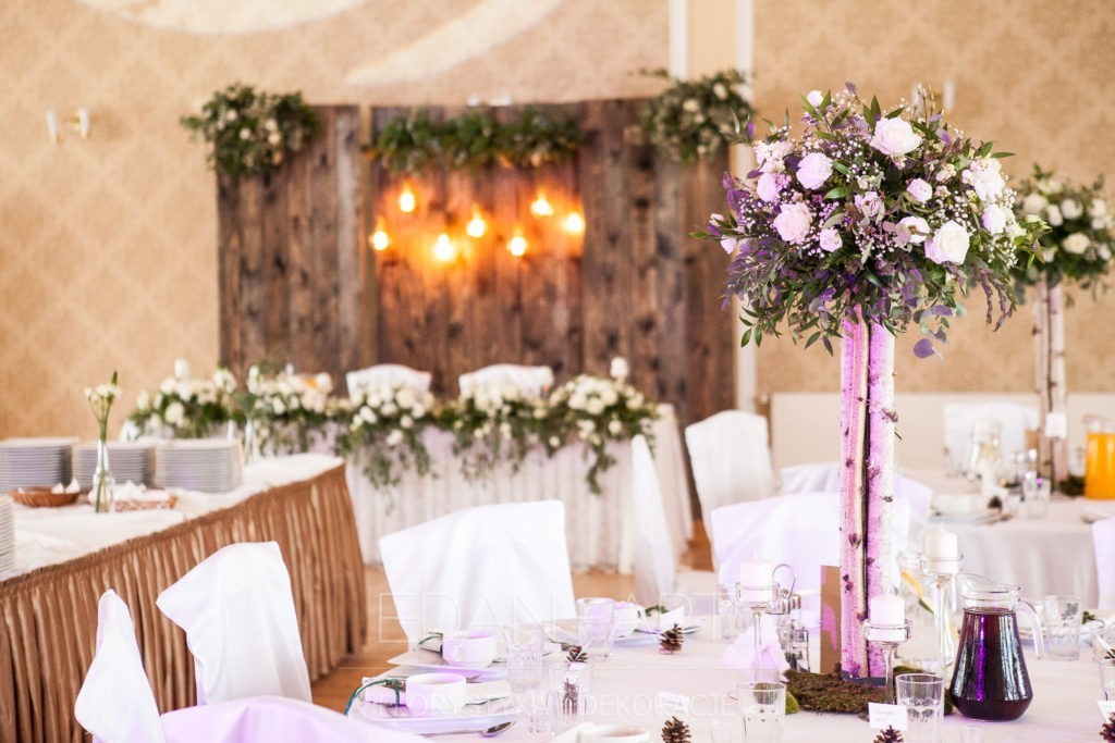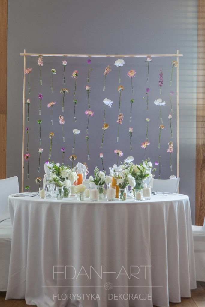 Wszystko to, co jest związane z kwiatami na sali weselnej od dekoracji stołu Młodej Pary, tła za Młodymi, kompozycji na stołach gości weselnych, bukietów na podestach w ważnych miejscach, stołów tematycznych po delikatne akcenty kwiatowe w recepcji czy w pokoju nowożeńców.