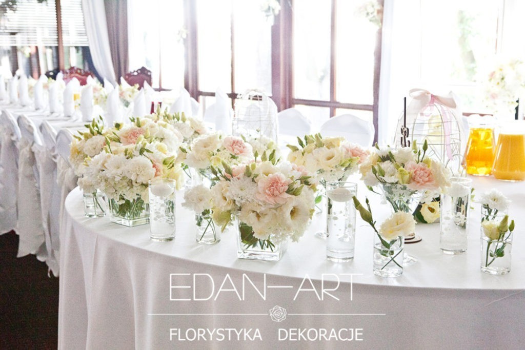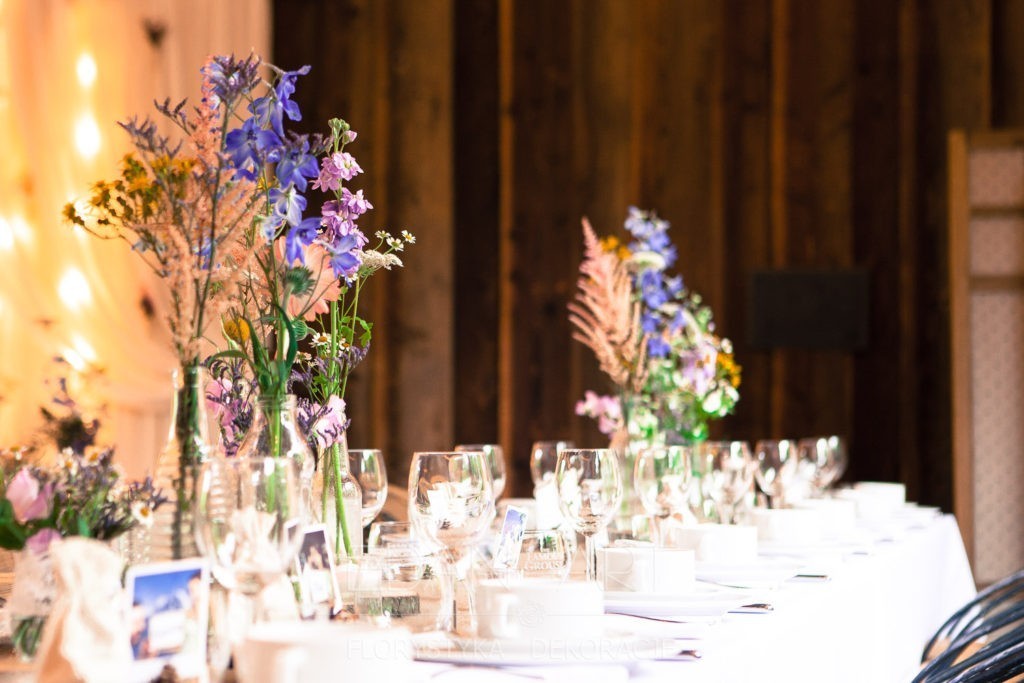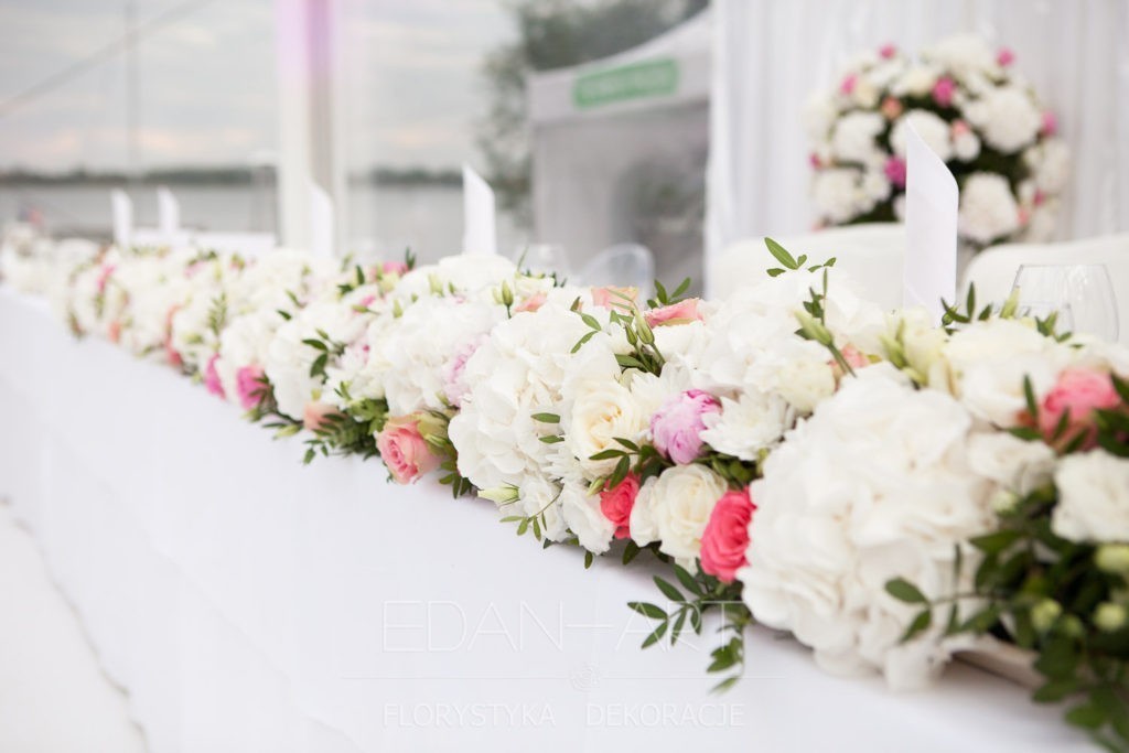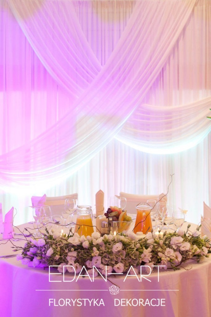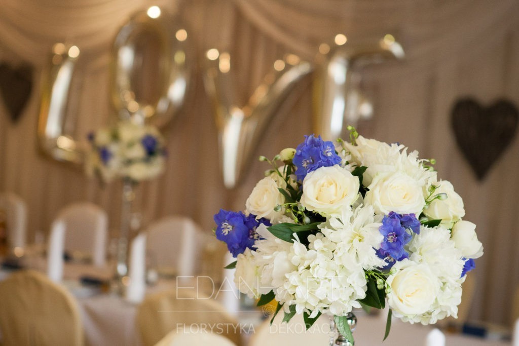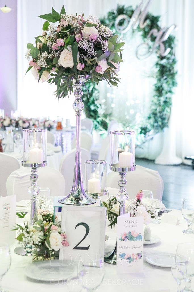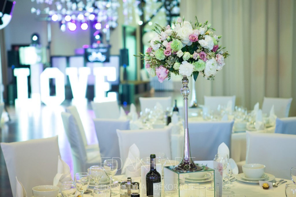 Wszystko to, co jest związane z kwiatami na sali weselnej od dekoracji stołu Młodej Pary, tła za Młodymi, kompozycji na stołach gości weselnych, bukietów na podestach w ważnych miejscach, stołów tematycznych po delikatne akcenty kwiatowe w recepcji czy w pokoju nowożeńców.