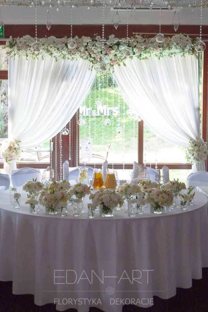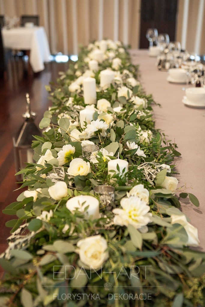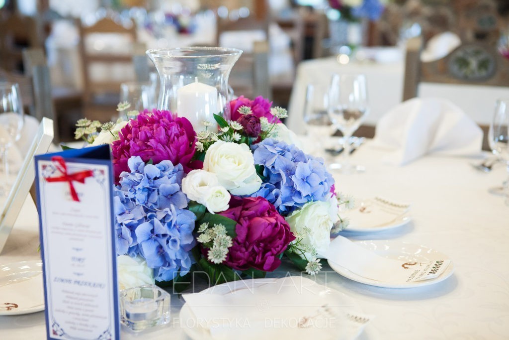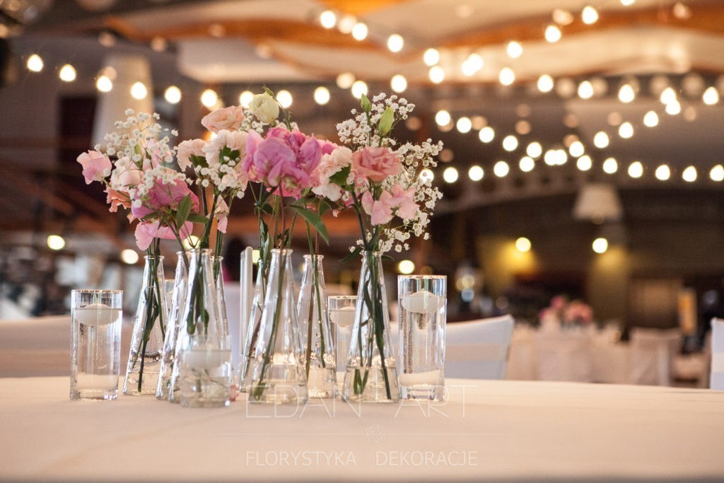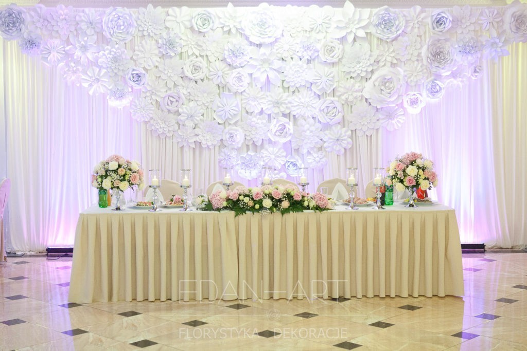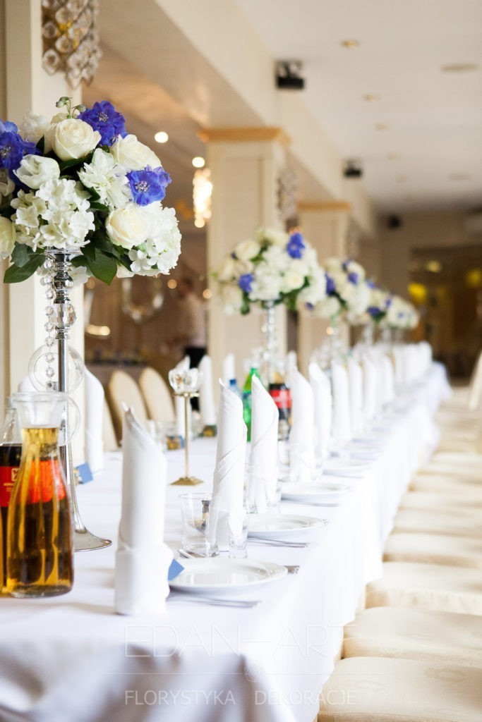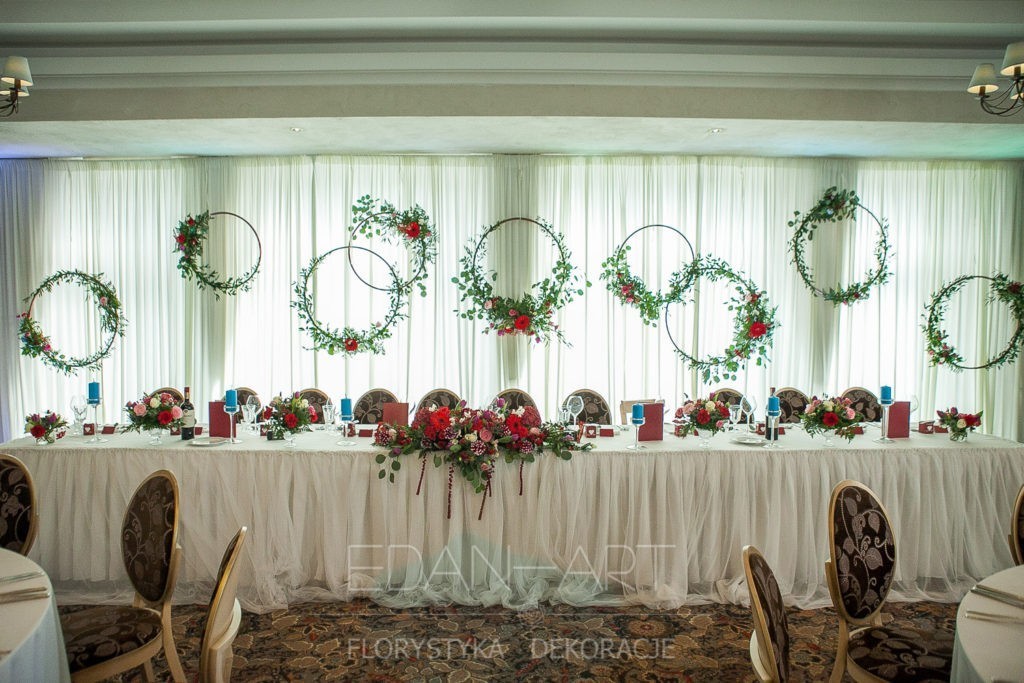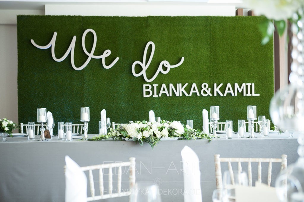 Wszystko to, co jest związane z kwiatami na sali weselnej od dekoracji stołu Młodej Pary, tła za Młodymi, kompozycji na stołach gości weselnych, bukietów na podestach w ważnych miejscach, stołów tematycznych po delikatne akcenty kwiatowe w recepcji czy w pokoju nowożeńców.