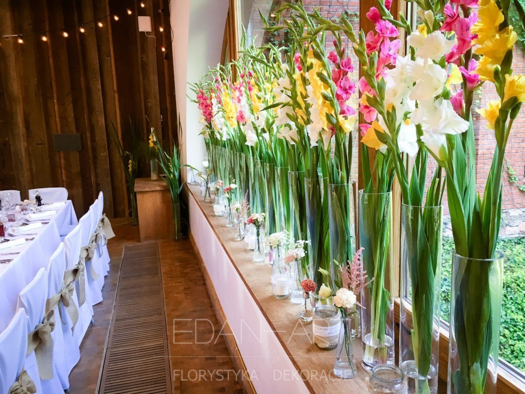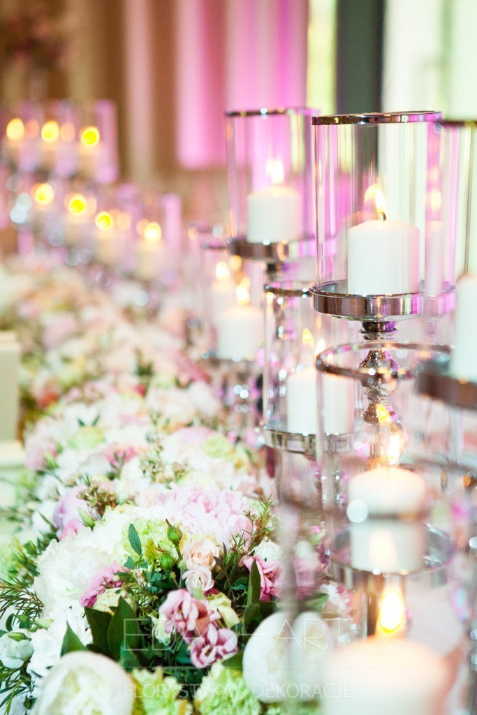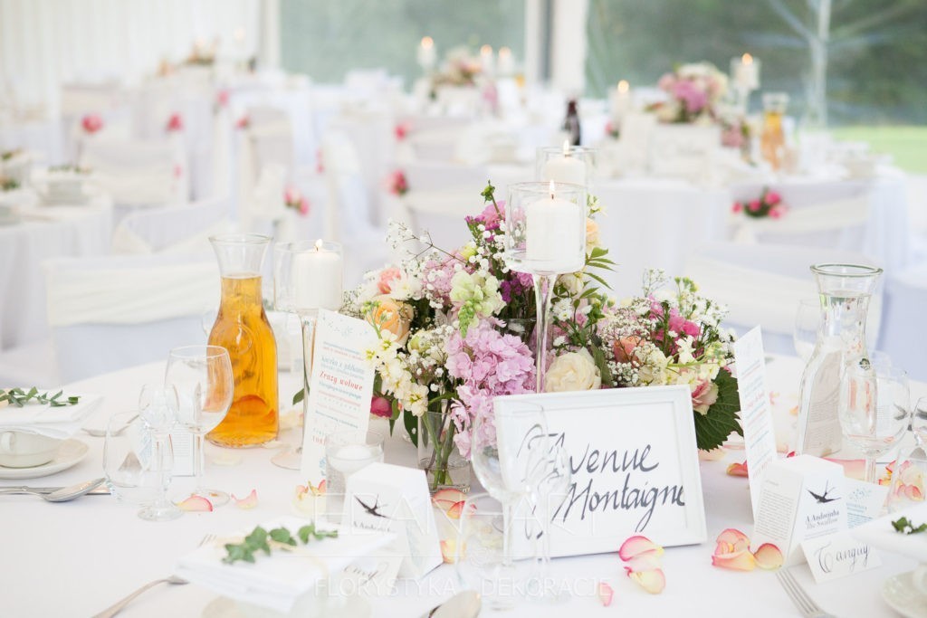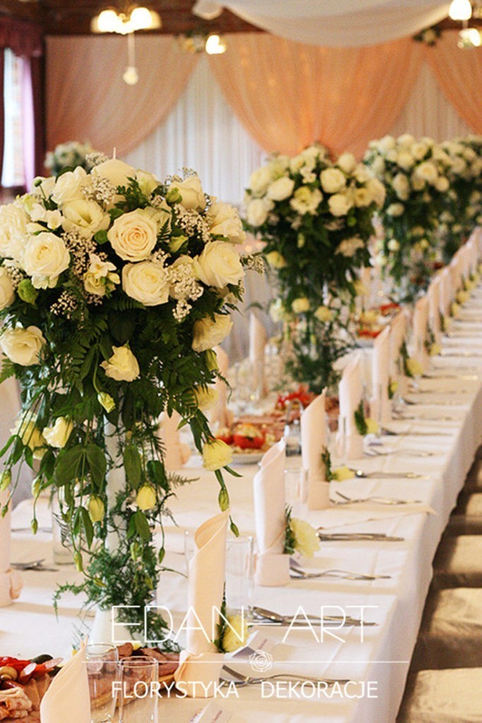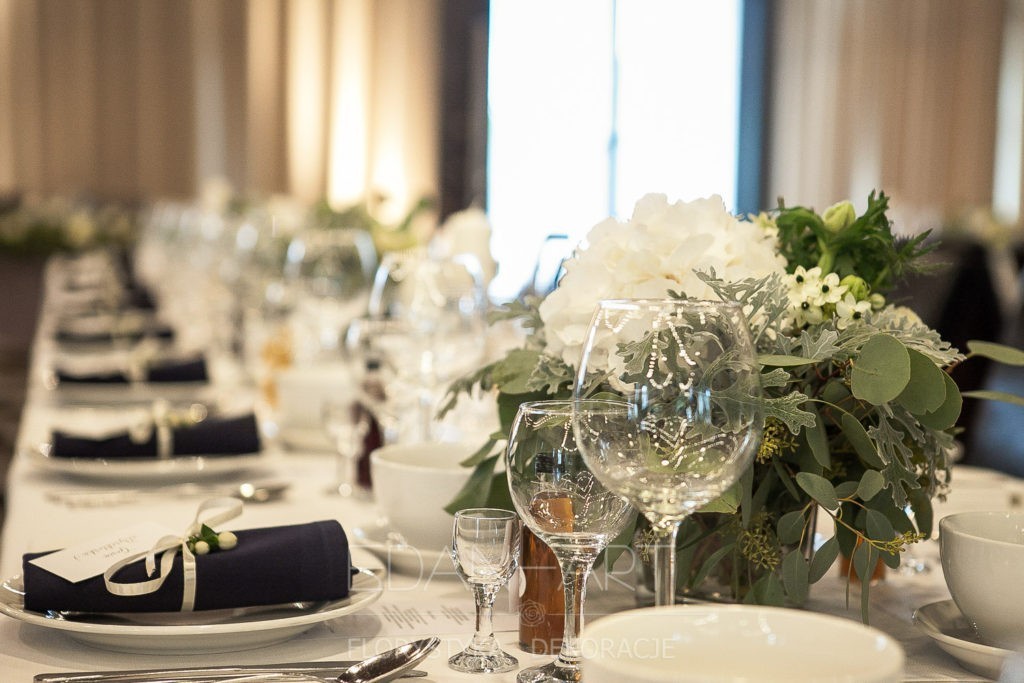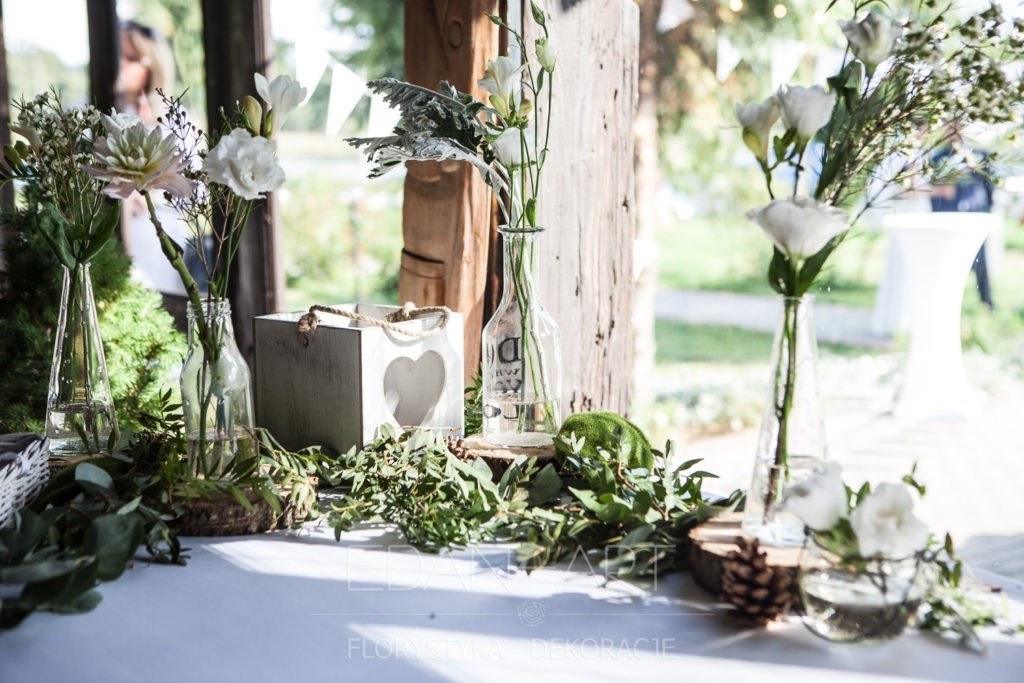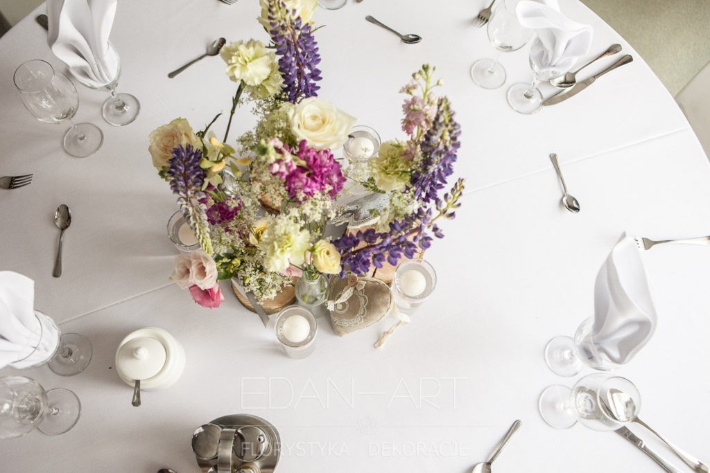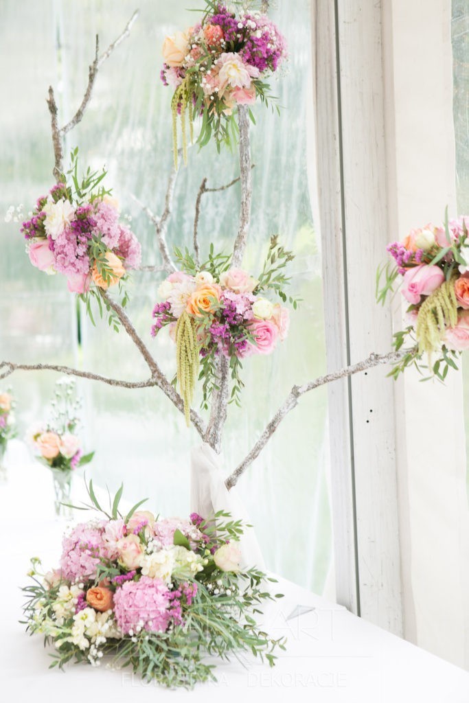 Wszystko to, co jest związane z kwiatami na sali weselnej od dekoracji stołu Młodej Pary, tła za Młodymi, kompozycji na stołach gości weselnych, bukietów na podestach w ważnych miejscach, stołów tematycznych po delikatne akcenty kwiatowe w recepcji czy w pokoju nowożeńców.