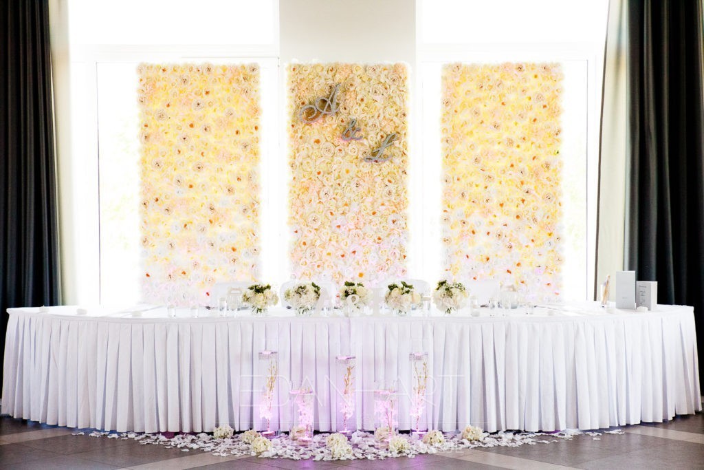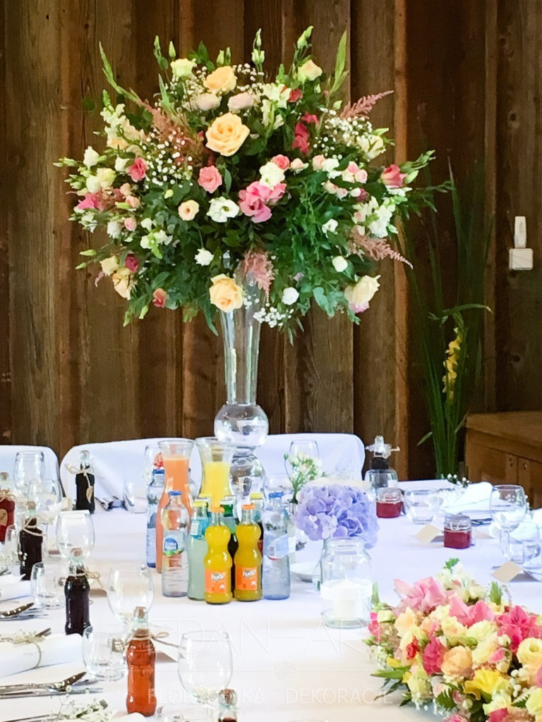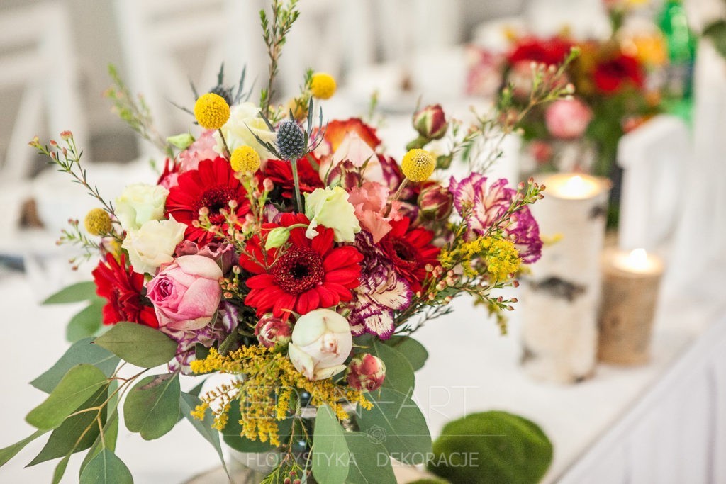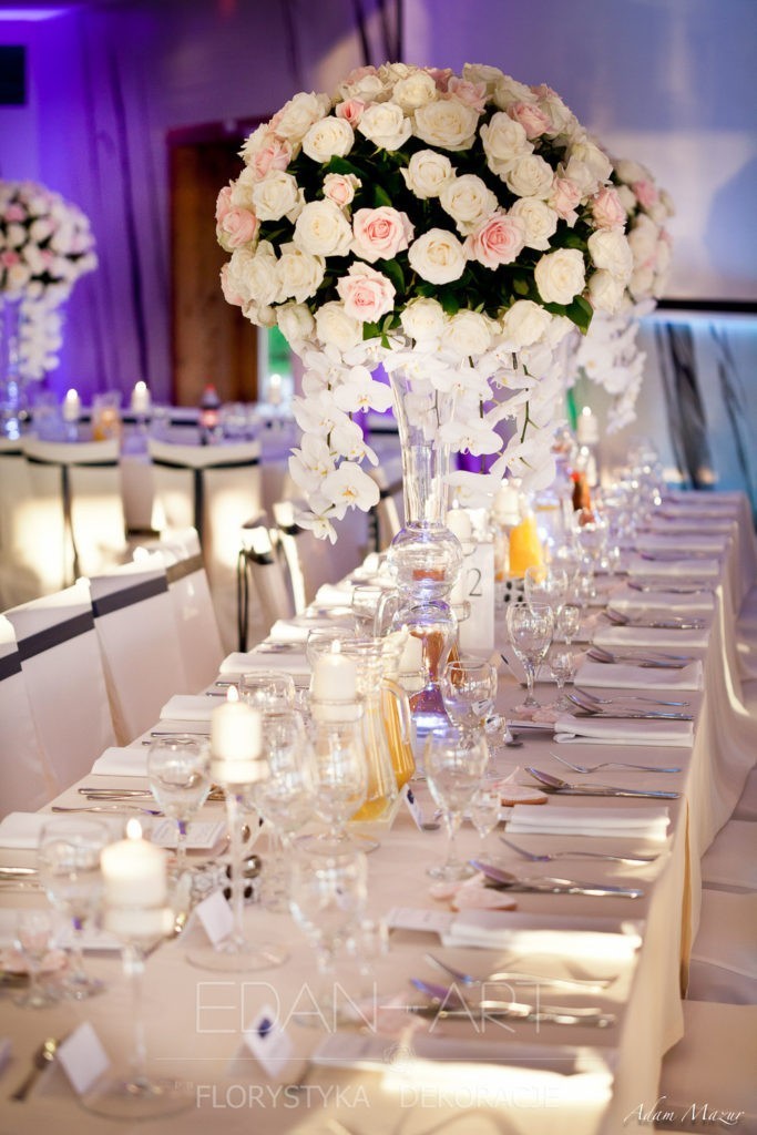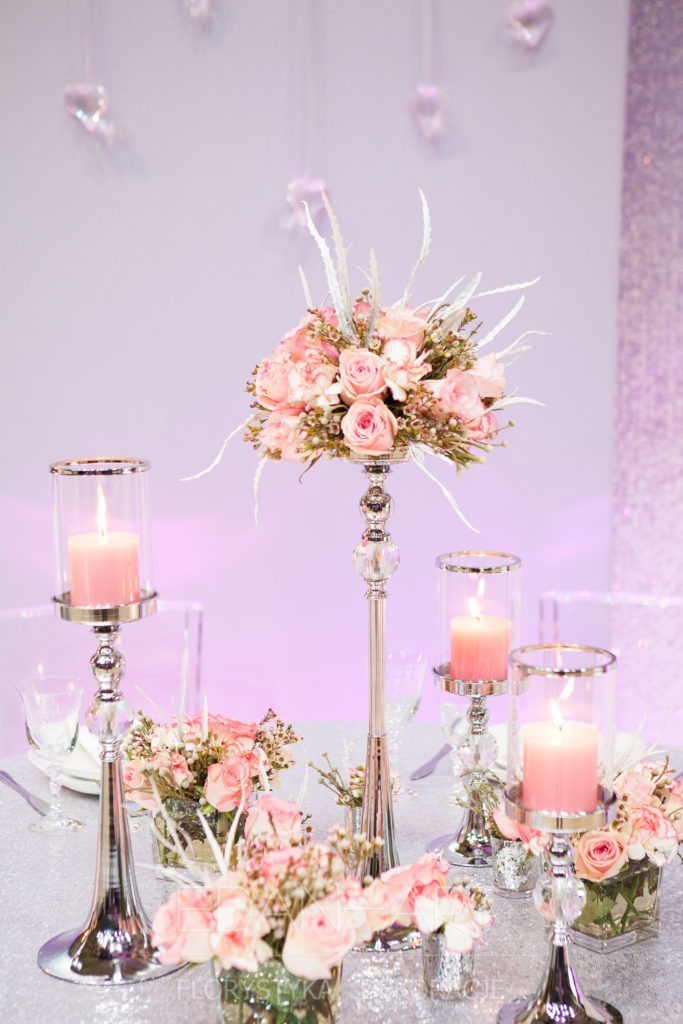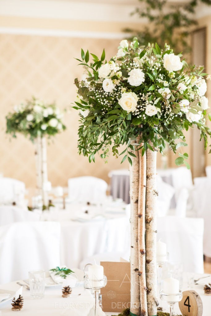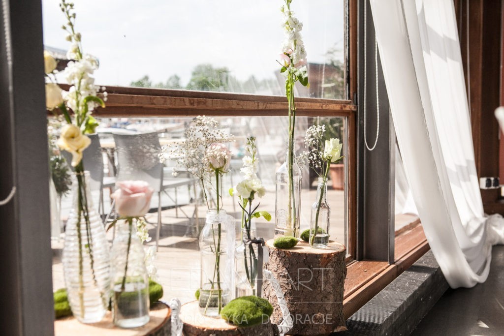 Wszystko to, co jest związane z kwiatami na sali weselnej od dekoracji stołu Młodej Pary, tła za Młodymi, kompozycji na stołach gości weselnych, bukietów na podestach w ważnych miejscach, stołów tematycznych po delikatne akcenty kwiatowe w recepcji czy w pokoju nowożeńców.