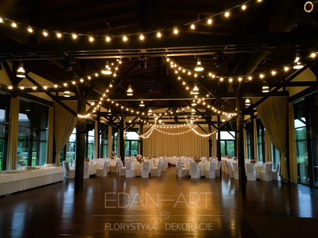 Światło świec, lampek, żarówek, girland, kurtyn świetlnych, dekoracja światłem kolorowym Led. Różnego rodzaje pokrowce na krzesła, z dodatkami kolorystycznymi: kokardy, wstążki, dekoracje koronkowe czy kwiatowe krzeseł.