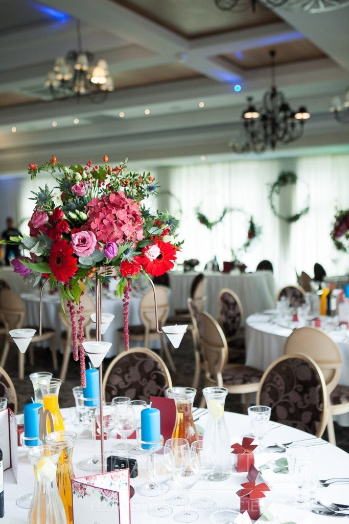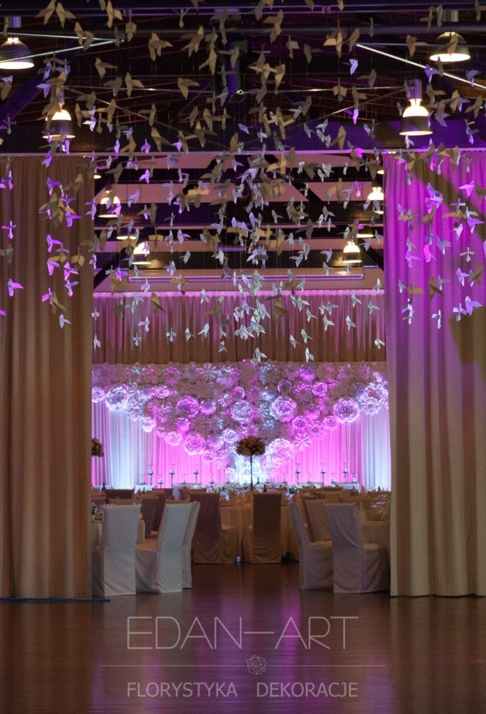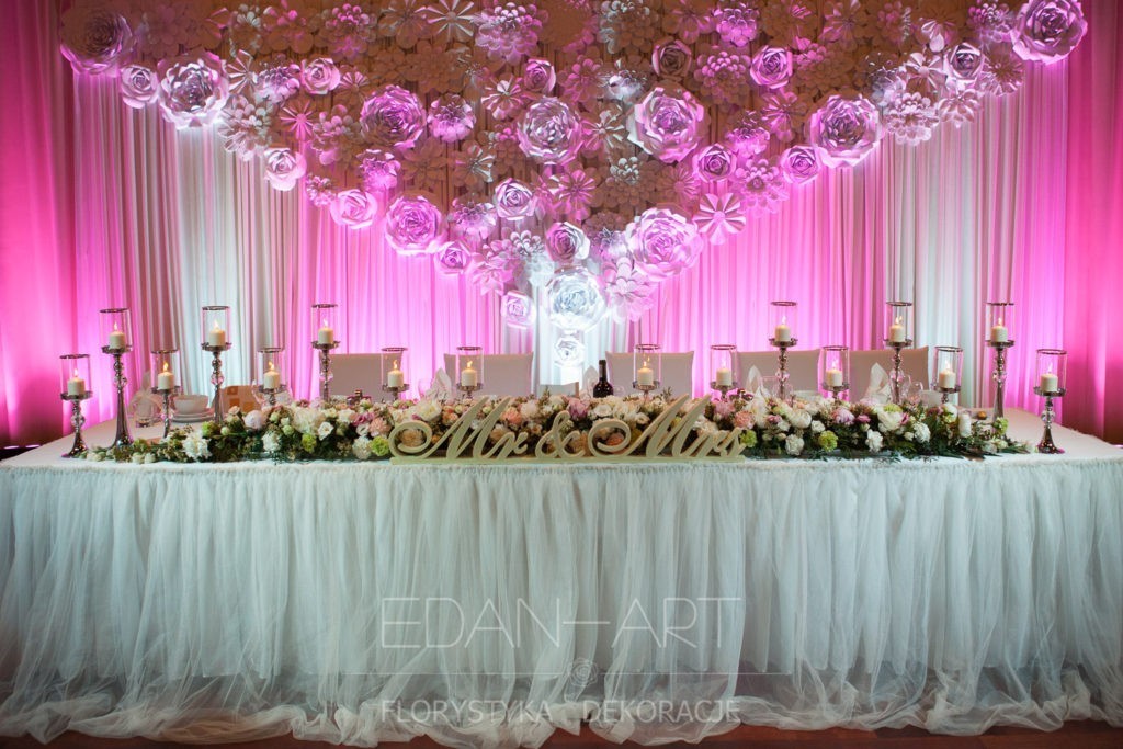 Obejrzeliście właśnie galerię zdjęć z różnymi przykładami dekoracji sal weselnych. Udało Wam się znaleźć tą wymarzoną — cieszymy się bardzo. Nie znaleźliście w przykładach tej dekoracji, której szukacie i chcielibyście mieć ją u siebie — to też się cieszymy, ponieważ jest duża szansa, że będzie oryginalna, uda nam się razem ją zaprojektować i stworzyć niepowtarzalny wystrój Waszego wesela.
